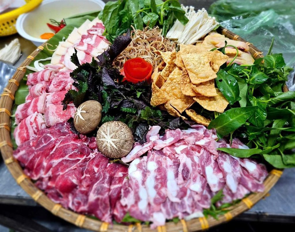 * Combo Lợn Bản: Lợn mường nướng, lợn mường hấp, nộm tai, cháo thịnh, lạp thịt…
