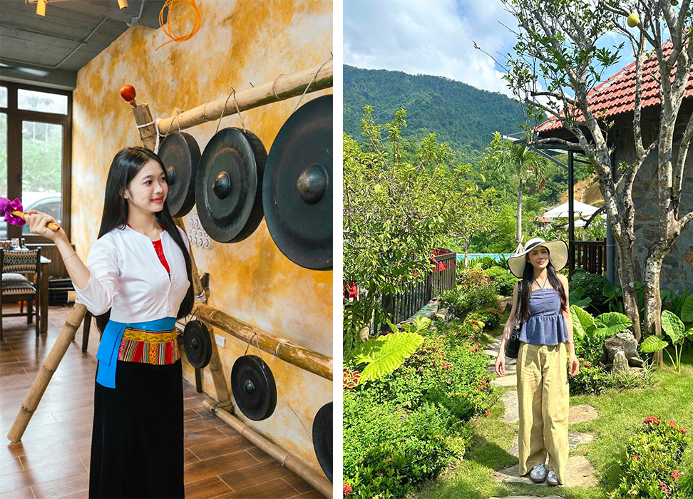 Không gian yên bình, gần gũi, phù hợp để nghỉ dưỡng, thiền, hoặc làm việc sáng tạo. Thực phẩm sạch lành, phần lớn do cán bộ nhân viên và bà con bản địa tự cung tự cấp. Hoạt động trải nghiệm đa dạng: chèo thuyền, cất lưới, chụp hoàng hôn, khám phá văn hóa Mường.